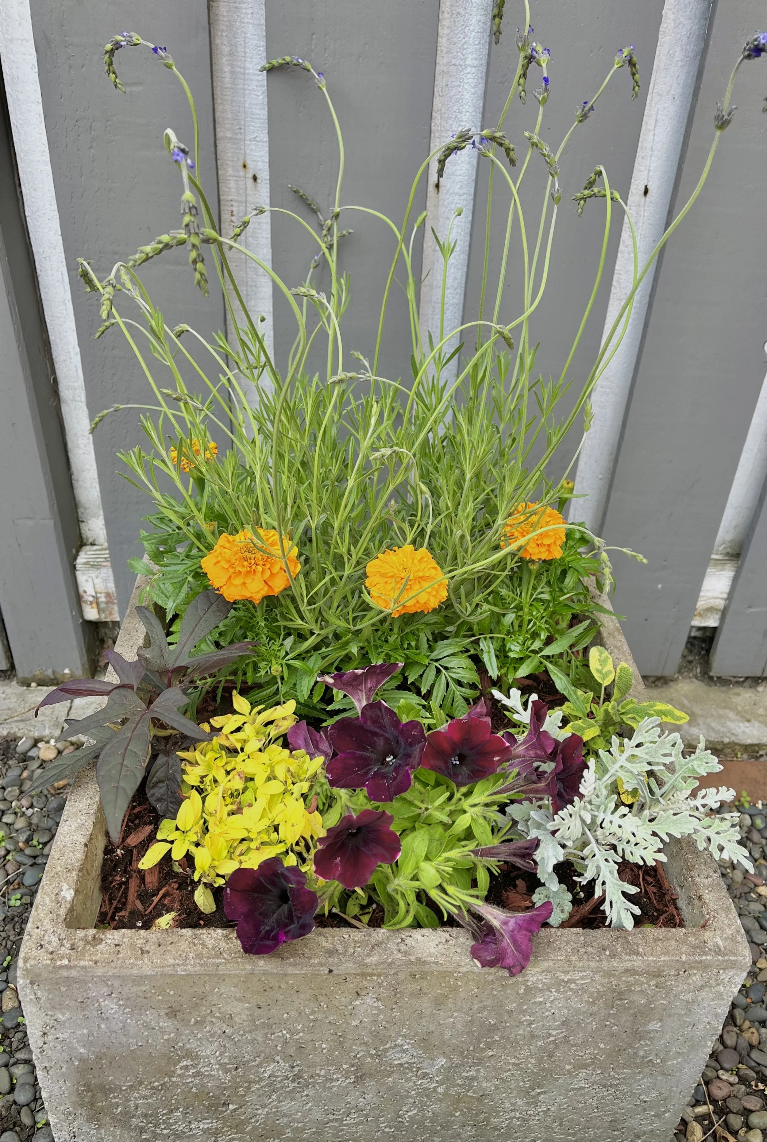Sturdy concrete containers fit in with the current aesthetic and provide ample space for future growth.